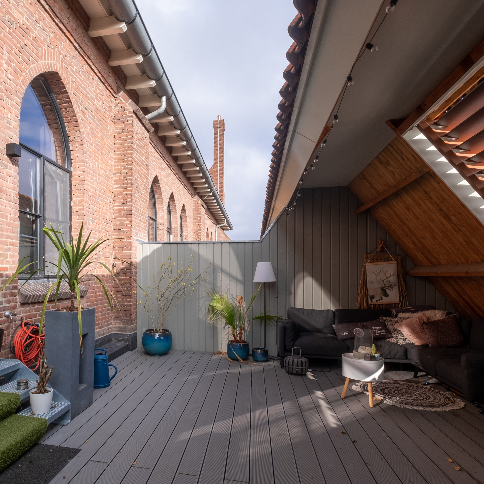 Nieuwe gevelopeningen zorgen voor voldoende daglicht. Daarbij is het onderscheid tussen oud en nieuw zorgvuldig zichtbaar gehouden: bestaande ramen liggen in het oorspronkelijke vlak, nieuwe openingen zijn uitgevoerd in slanke stalen profielen vóór in de gevel.